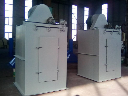 含塵氣體由進氣口進入灰斗或儲灰箱,通過花板孔或直接通過花板孔三種方式進入濾袋。含塵氣體透過濾袋變?yōu)閮魵猓M入箱體,再經(jīng)箱體上部排氣口,由風機排走。粉塵積附在濾袋的內(nèi)表面,且不斷增加,使袋收塵器的阻力不斷上升。當阻力上升到1500—2000Pa時為了使袋收塵器繼續(xù)工作,需定期濾袋上的粉塵。具體清灰時, 先關閉頂上風機,搖動電機上偏心作用,帶動連桿,使搖動軸左右來回轉(zhuǎn)動,濾袋就呈波紋狀態(tài),使粉塵掉下,卸出。